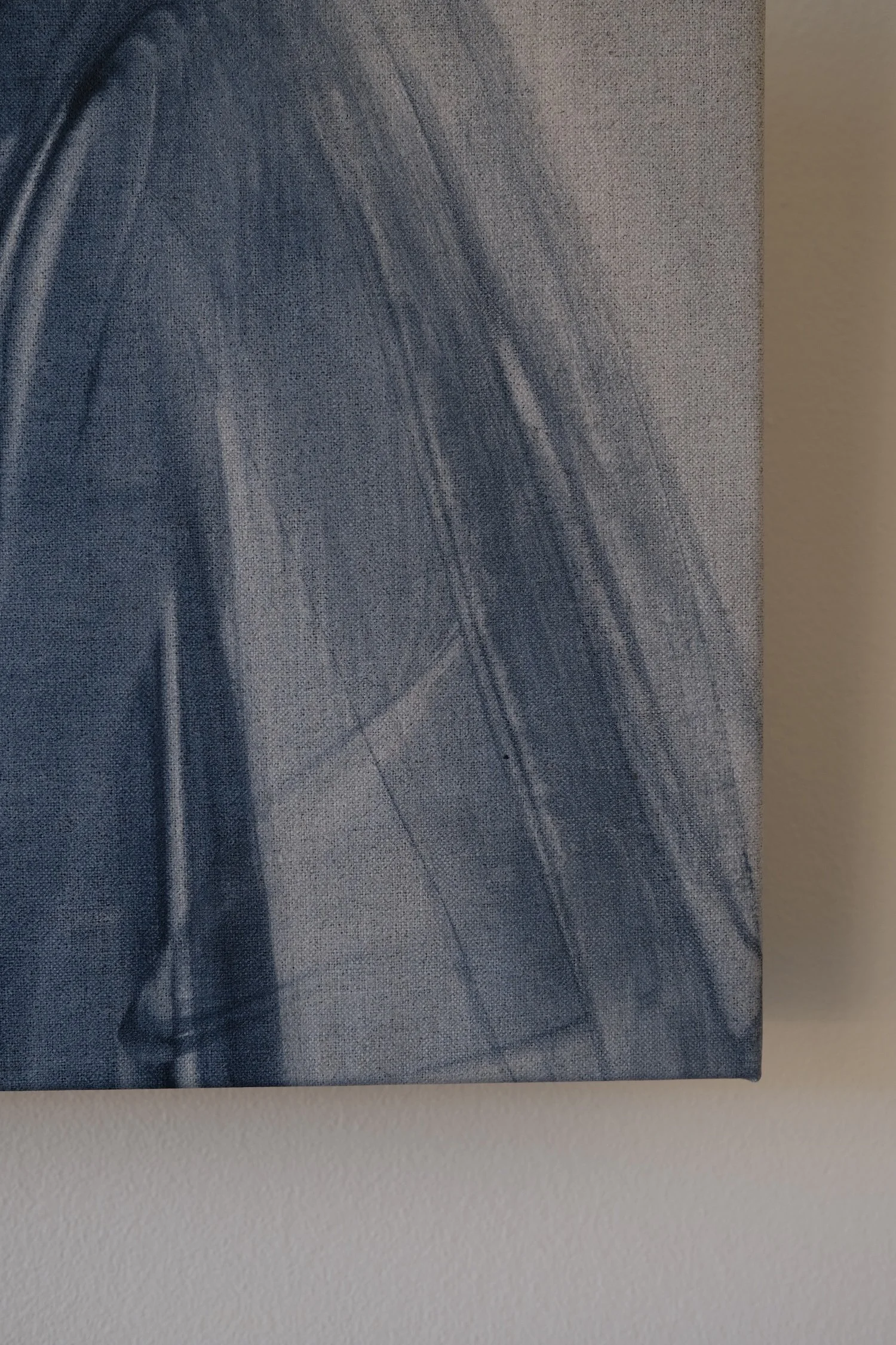 Blue operates as both subject and material in my paintings. It is not only the palette I work with but also the emotional terrain I inhabit within my imagery. Its associations with water, sky, and emotional depth place the work in a liminal space—between the physical and the psychological, between place and dream. Within this space, horizons and tides emerge, offering calm and safety while retaining an undercurrent of melancholy and grief. Layered blues create emotional texture—diluted and translucent in some areas, dense and saturated in others—as if feeling has been reflected in the surface, carrying the quiet beauty of nature and the deepening of memory.