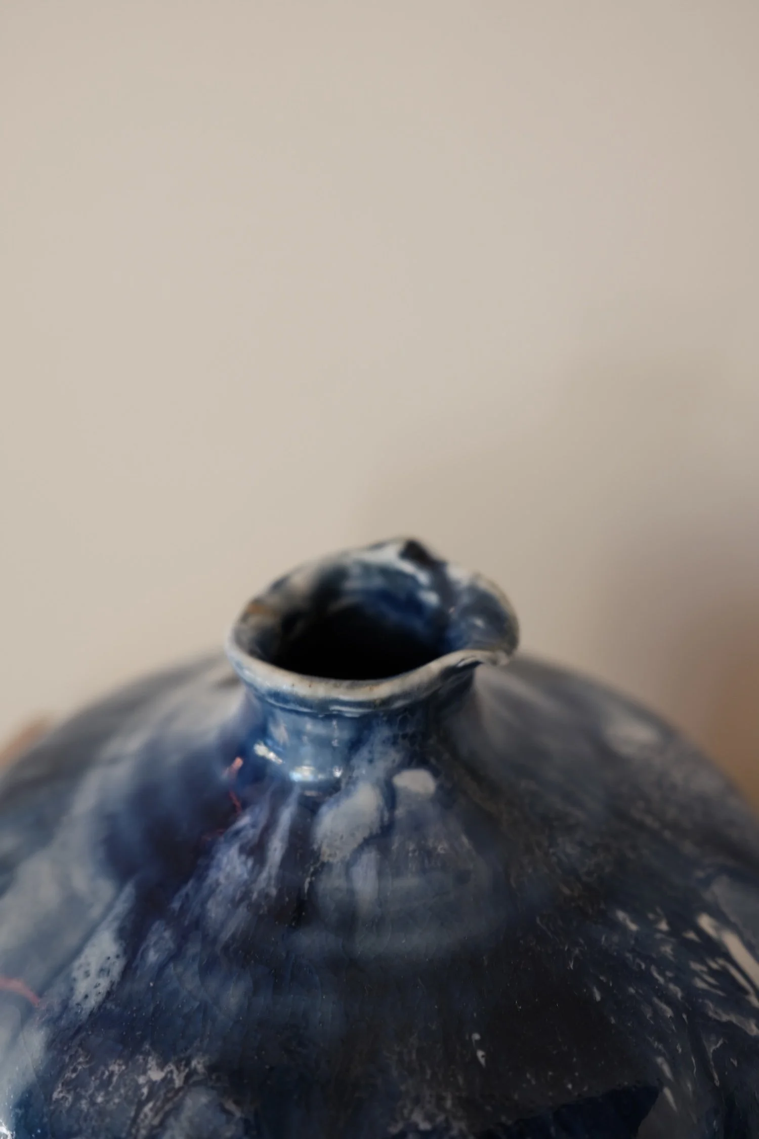The works move away from traditional vessel logic toward abstraction and sculptural presence. Forms are minimal and softly contoured, scaled larger than my previous pieces, allowing surface to carry the primary visual weight. Layered blues, tonal shifts, and painterly effects emerge through firing rather than direct control.