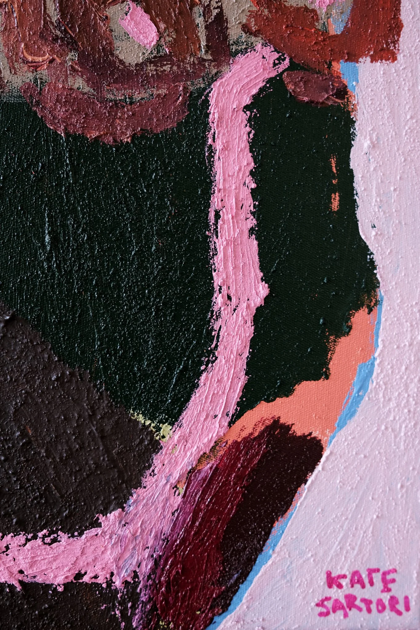 I mix sand into paint for that rough, earthy feel, layering acrylics with oil sticks so colour and texture meet in surprising ways. It’s my way of grounding myself, connecting to place, and letting my inner child guide the work, just as nature intended.