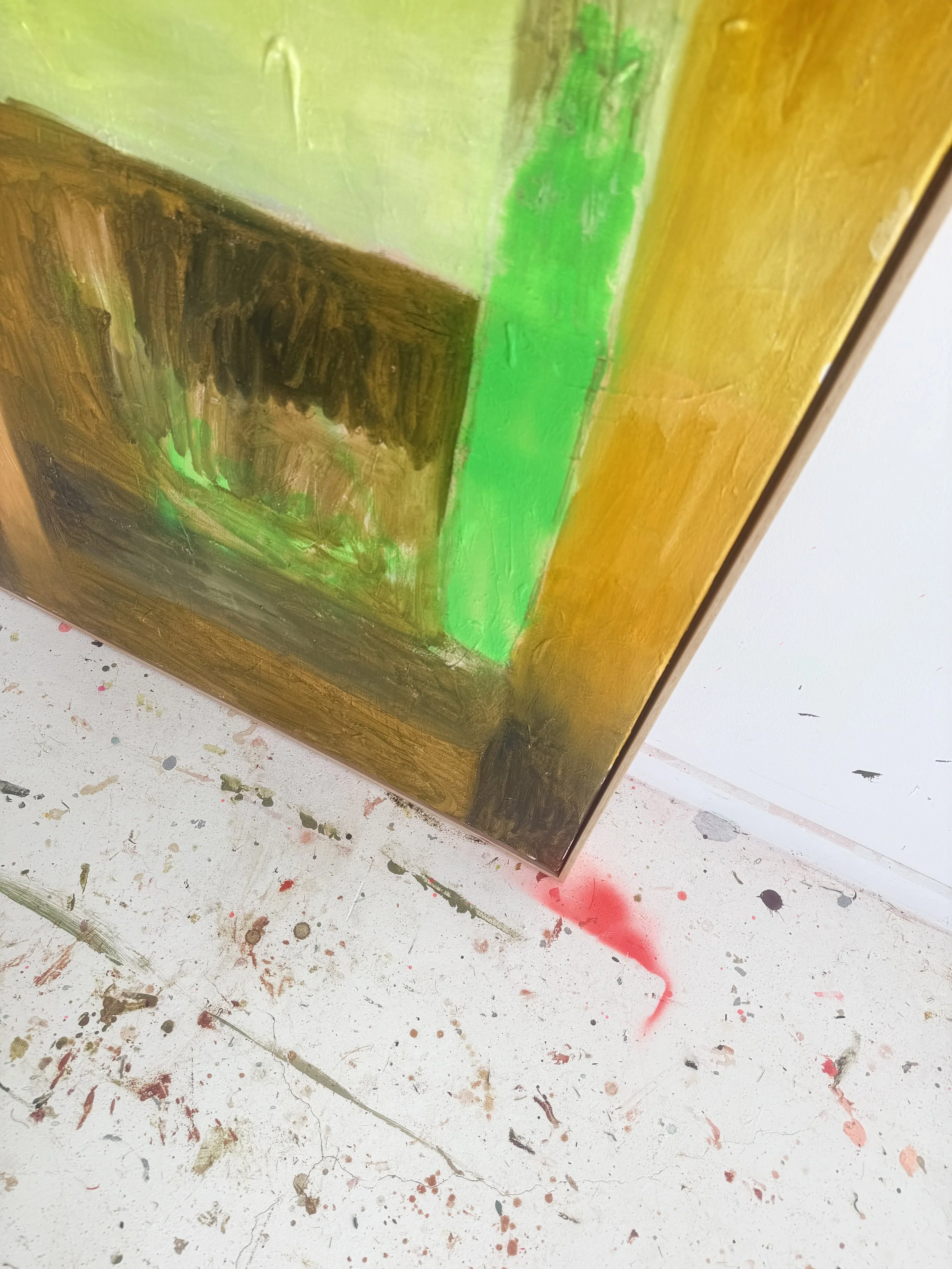 Shannon’s signature style is defined by ethereal, neon-pastel palettes and emotionally charged, layered tableaux. Working primarily with acrylics, oil sticks, and unconventional tools, she employs a unique process of layering and extraction to create immersive, dynamic works.