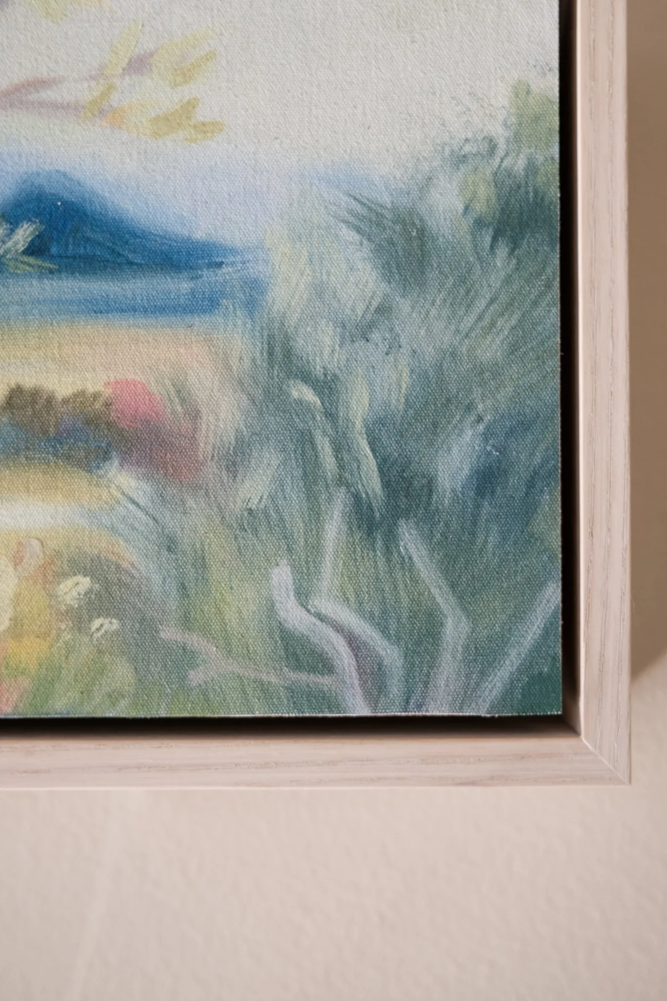 My observational fieldwork is the most enjoyable part of my art practice—time when I feel calm and deeply connected to all that is, in mind, body, and spirit. The watercolours I make, function like descriptive diary entries. They possess a freshness, akin to a poem that arrives upon waking. This time spent in research and observation leads to more complex and formal considerations when I move into larger works in oil. Through the building of translucent layers and the application of washes that bleed and crawl across the surface, I reach for the spaciousness that characterises my diary observations. I aim to present an enchanted landscape that is soft, nuanced, expansive, light and dissolving—all at once.