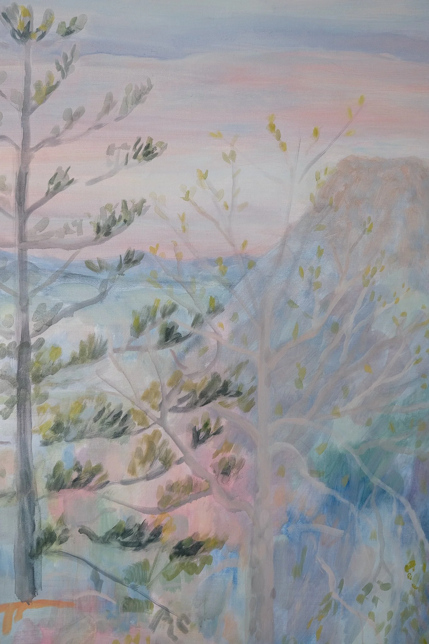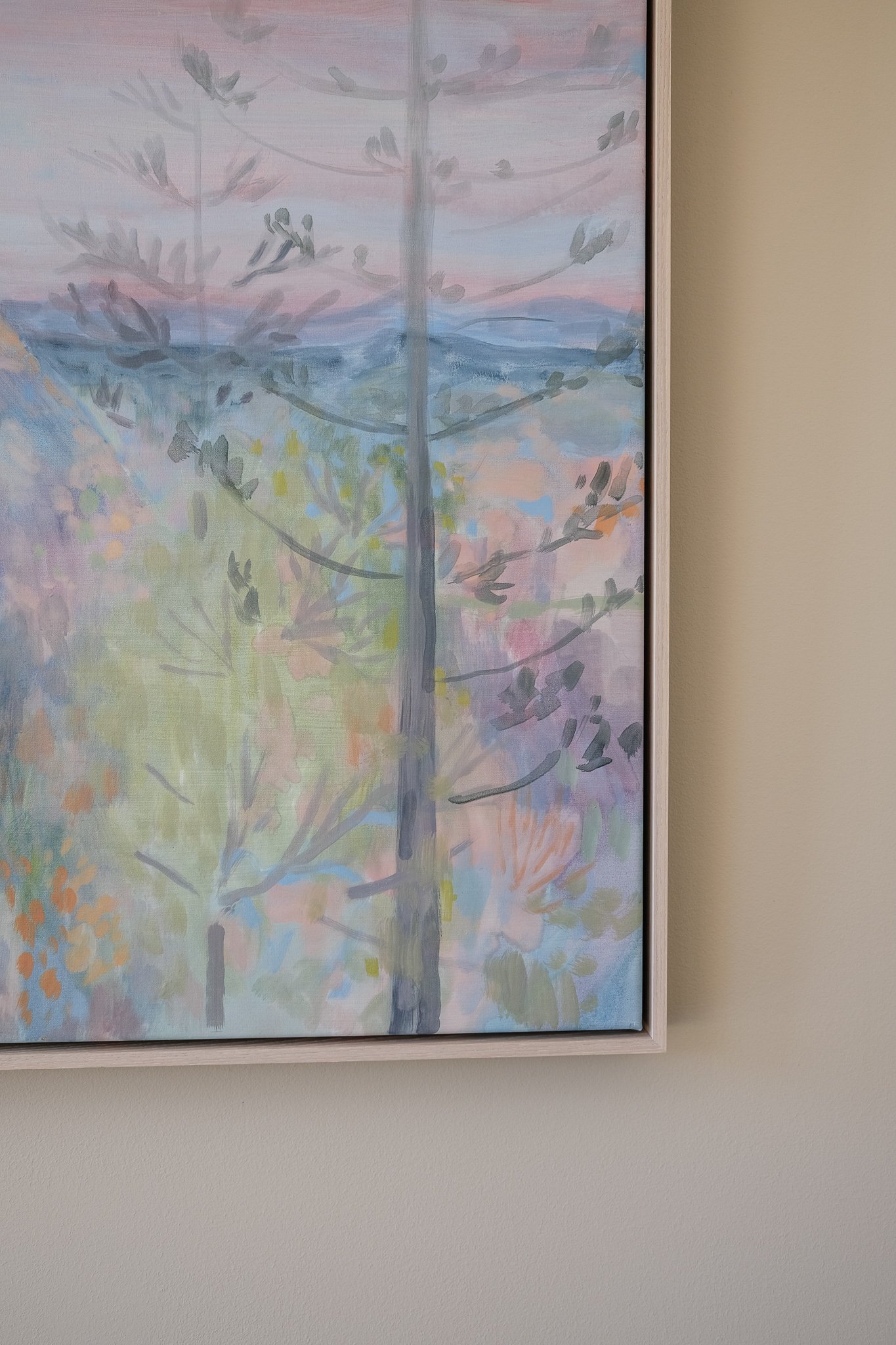 My observational fieldwork is the most enjoyable part of my art practice—time when I feel calm and deeply connected to all that is, in mind, body, and spirit. The watercolours I make, function like descriptive diary entries. They possess a freshness, akin to a poem that arrives upon waking. This time spent in research and observation leads to more complex and formal considerations when I move into larger works in oil. Through the building of translucent layers and the application of washes that bleed and crawl across the surface, I reach for the spaciousness that characterises my diary observations. I aim to present an enchanted landscape that is soft, nuanced, expansive, light and dissolving—all at once.