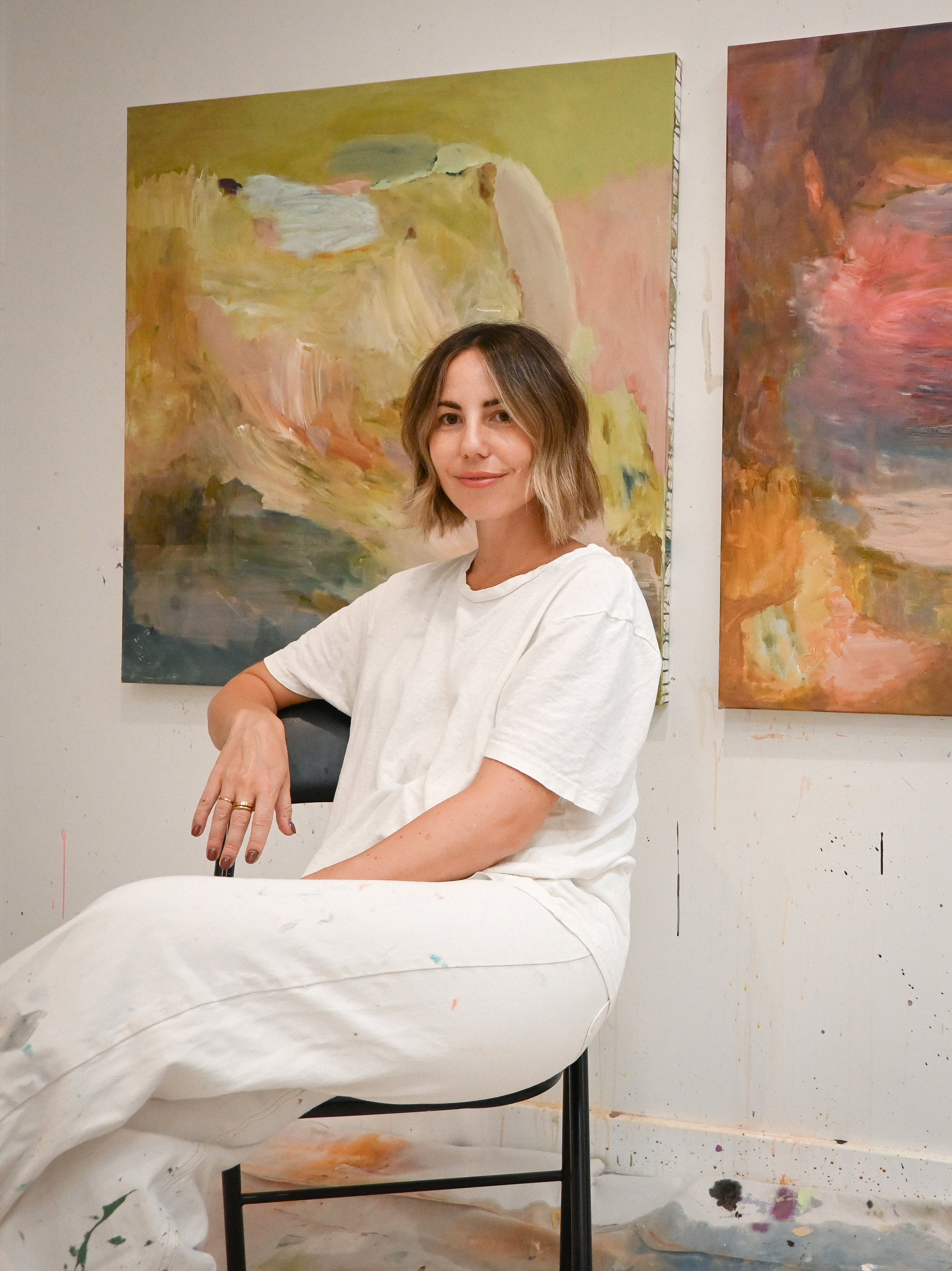 Today, I practice as both an illustrative textile designer and traditional artist through the medium of painting, primarily working with acrylic, soft pastel and oil sticks, and moving between abstract, semi-abstract and still life subjects. My paintings are defined by a soft, feminine palette of pastels and earth tones, evoking a quiet tension between expressive marks of bold colour, and ethereal, dreamlike shapes and poignant vignettes created by layering.