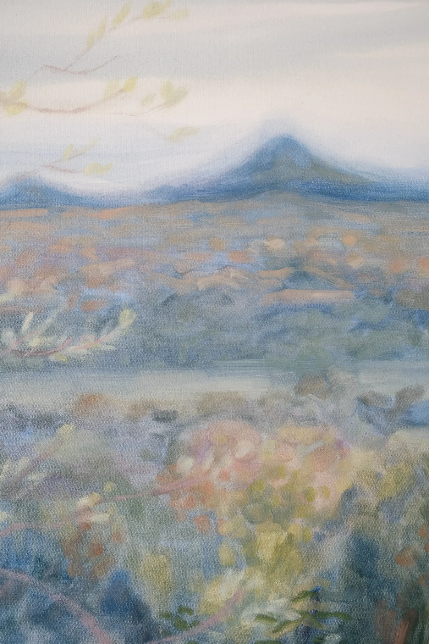 My observational fieldwork is the most enjoyable part of my art practice—time when I feel calm and deeply connected to all that is, in mind, body, and spirit. The watercolours I make, function like descriptive diary entries. They possess a freshness, akin to a poem that arrives upon waking. This time spent in research and observation leads to more complex and formal considerations when I move into larger works in oil. Through the building of translucent layers and the application of washes that bleed and crawl across the surface, I reach for the spaciousness that characterises my diary observations. I aim to present an enchanted landscape that is soft, nuanced, expansive, light and dissolving—all at once.