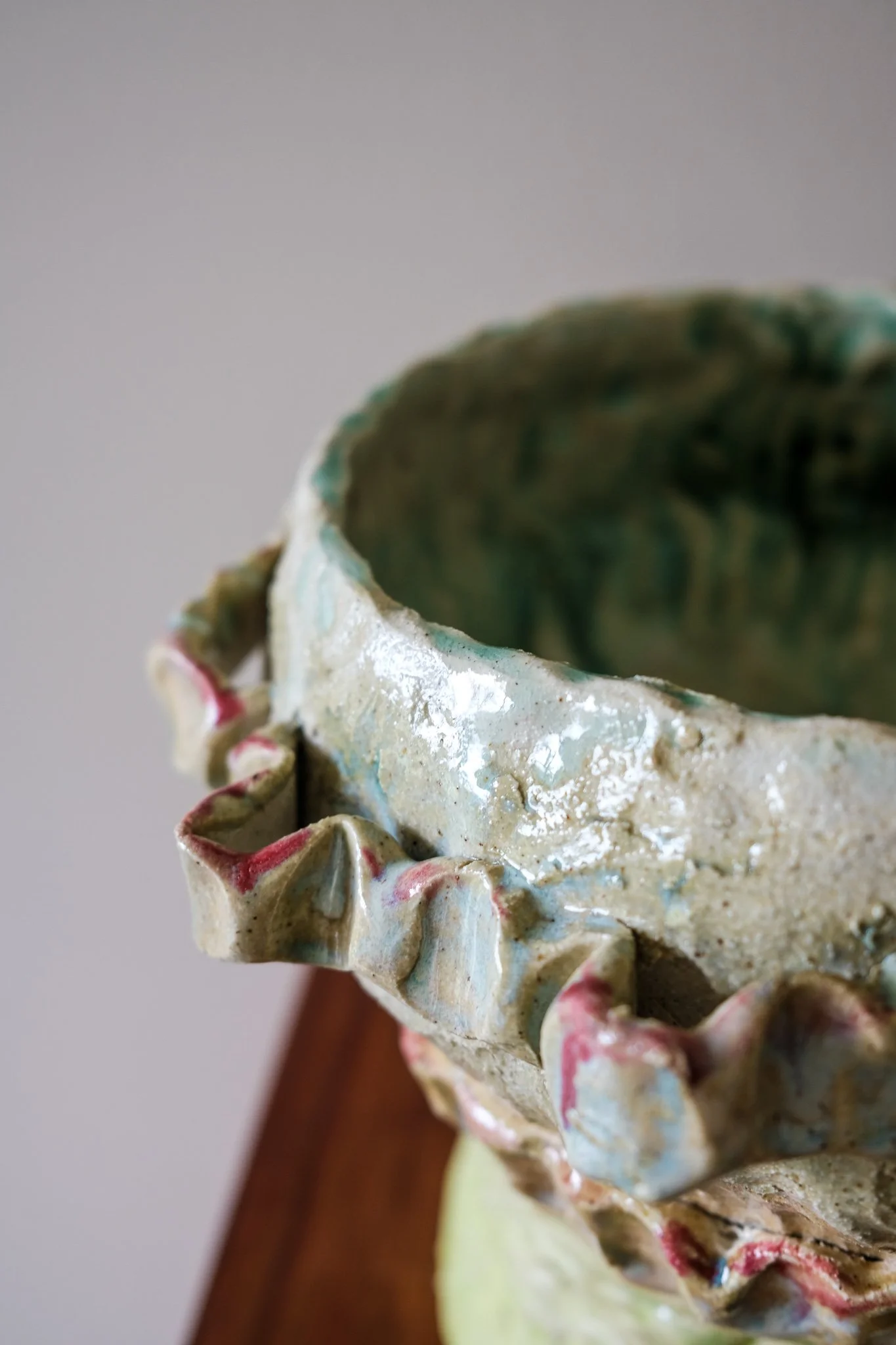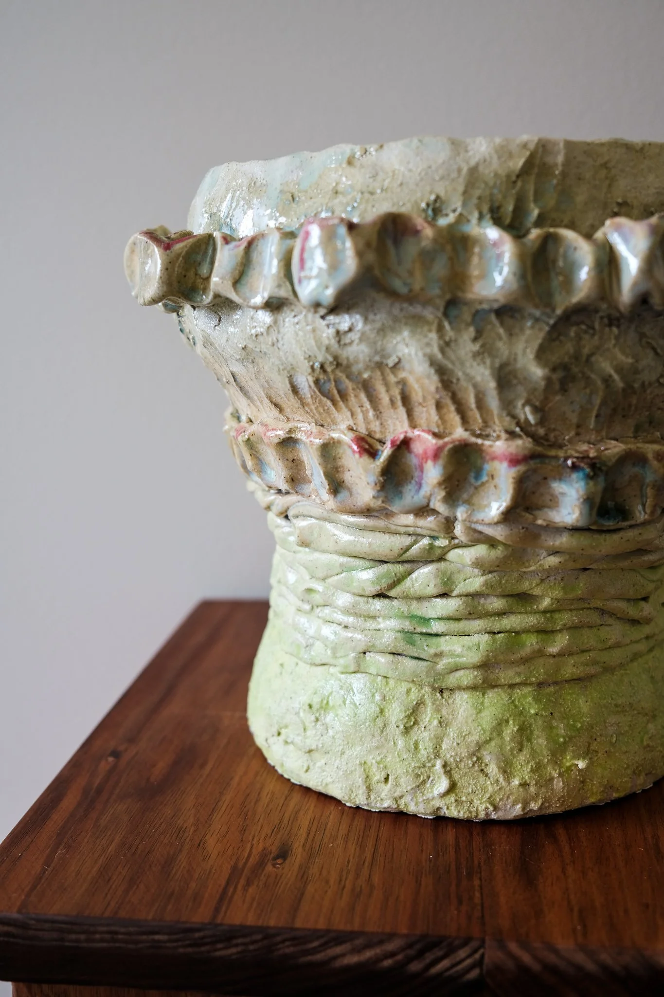 I want to manifest the liminal space between life and death; the clay fired in an echo of the body, leaving us with an incarnation to contemplate after life. My intentions when I have made each piece is that they could possibly house ashes or in stark contrast, flowers and foliage, universal symbols of life.