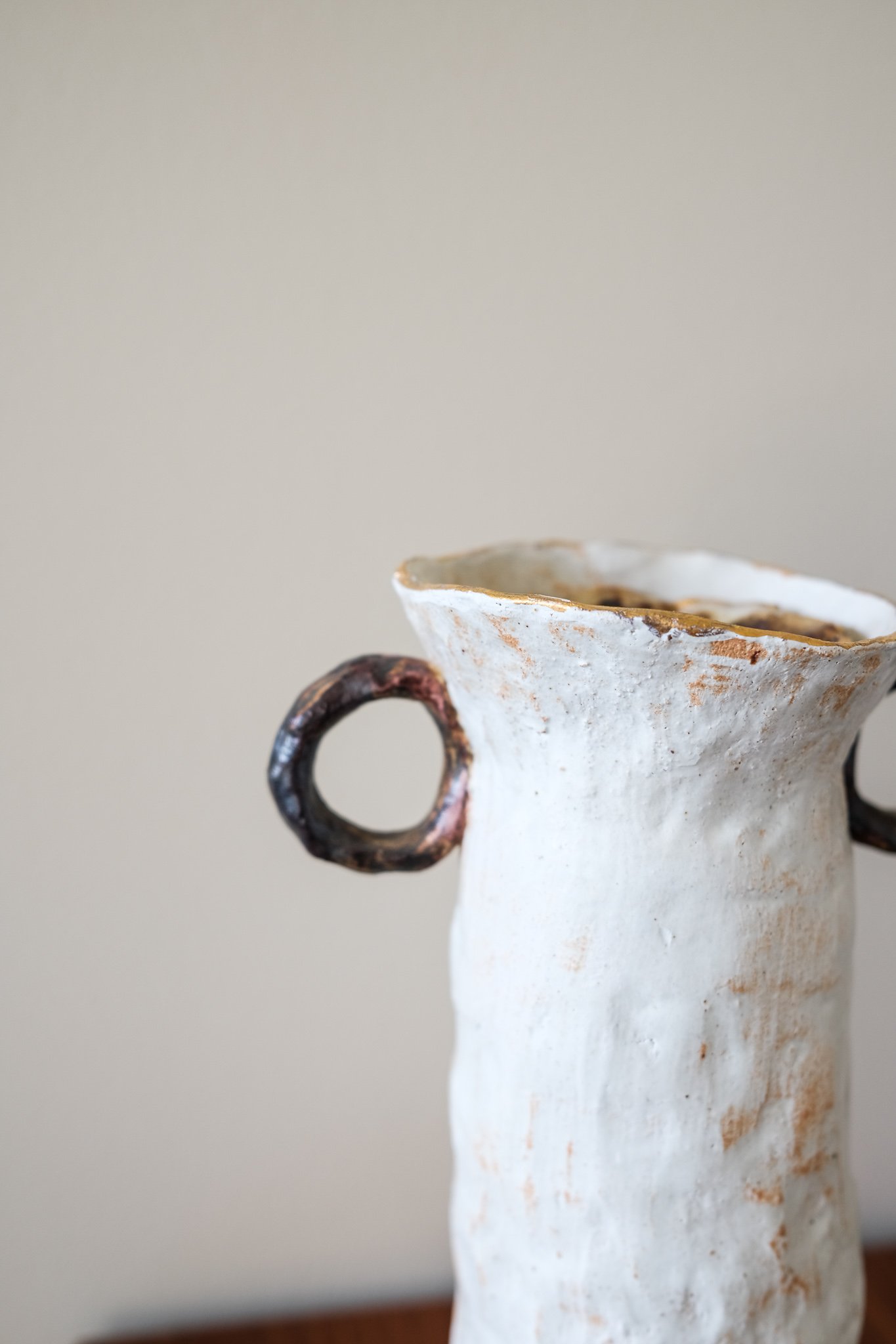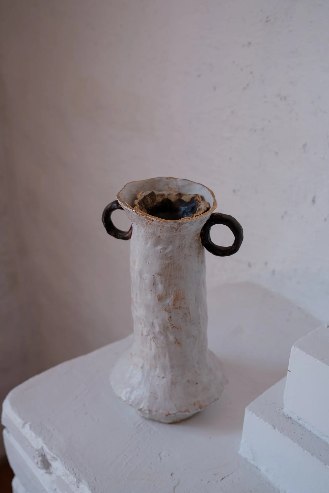 I want to manifest the liminal space between life and death; the clay fired in an echo of the body, leaving us with an incarnation to contemplate after life. My intentions when I have made each piece is that they could possibly house ashes or in stark contrast, flowers and foliage, universal symbols of life.