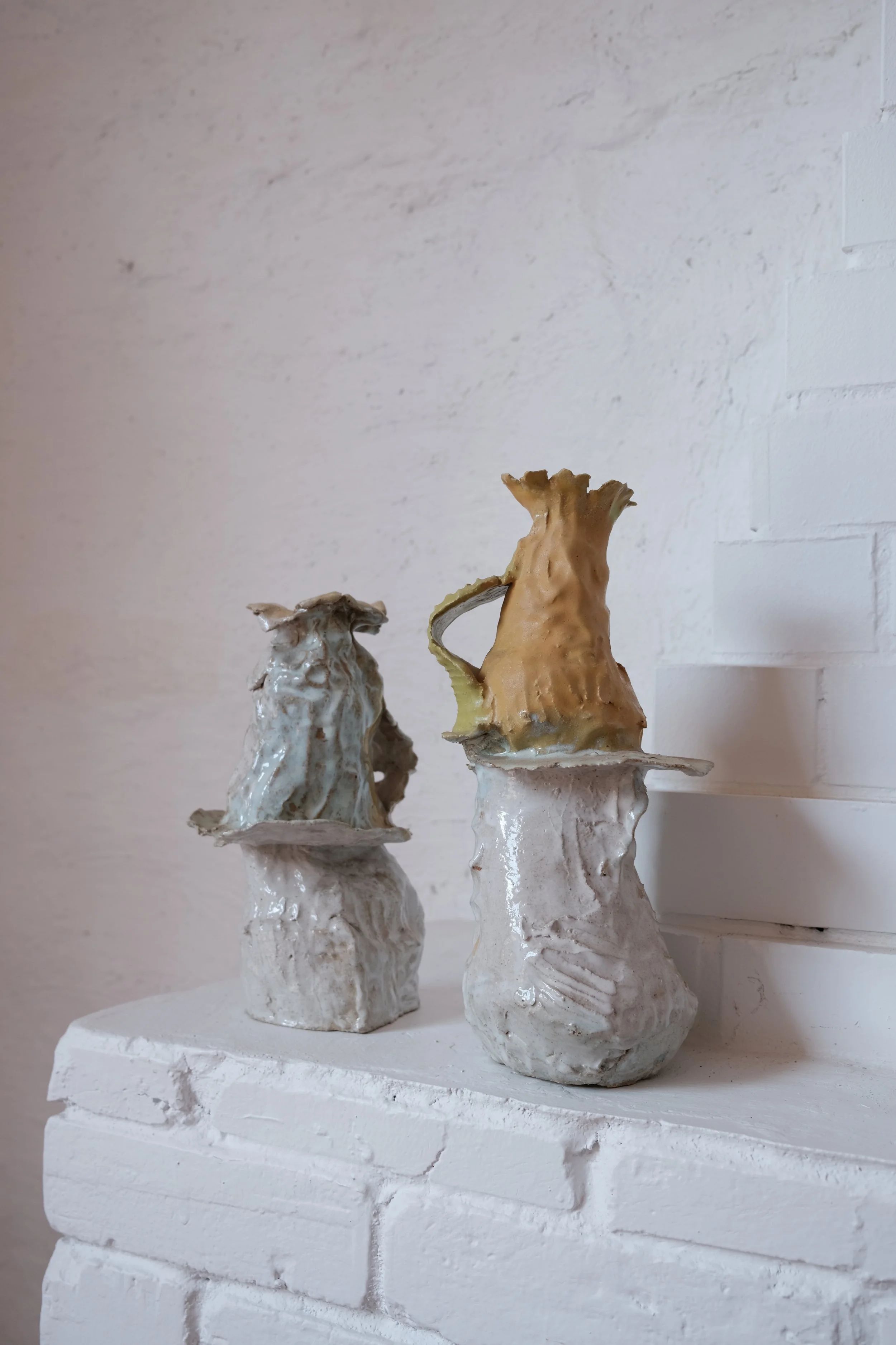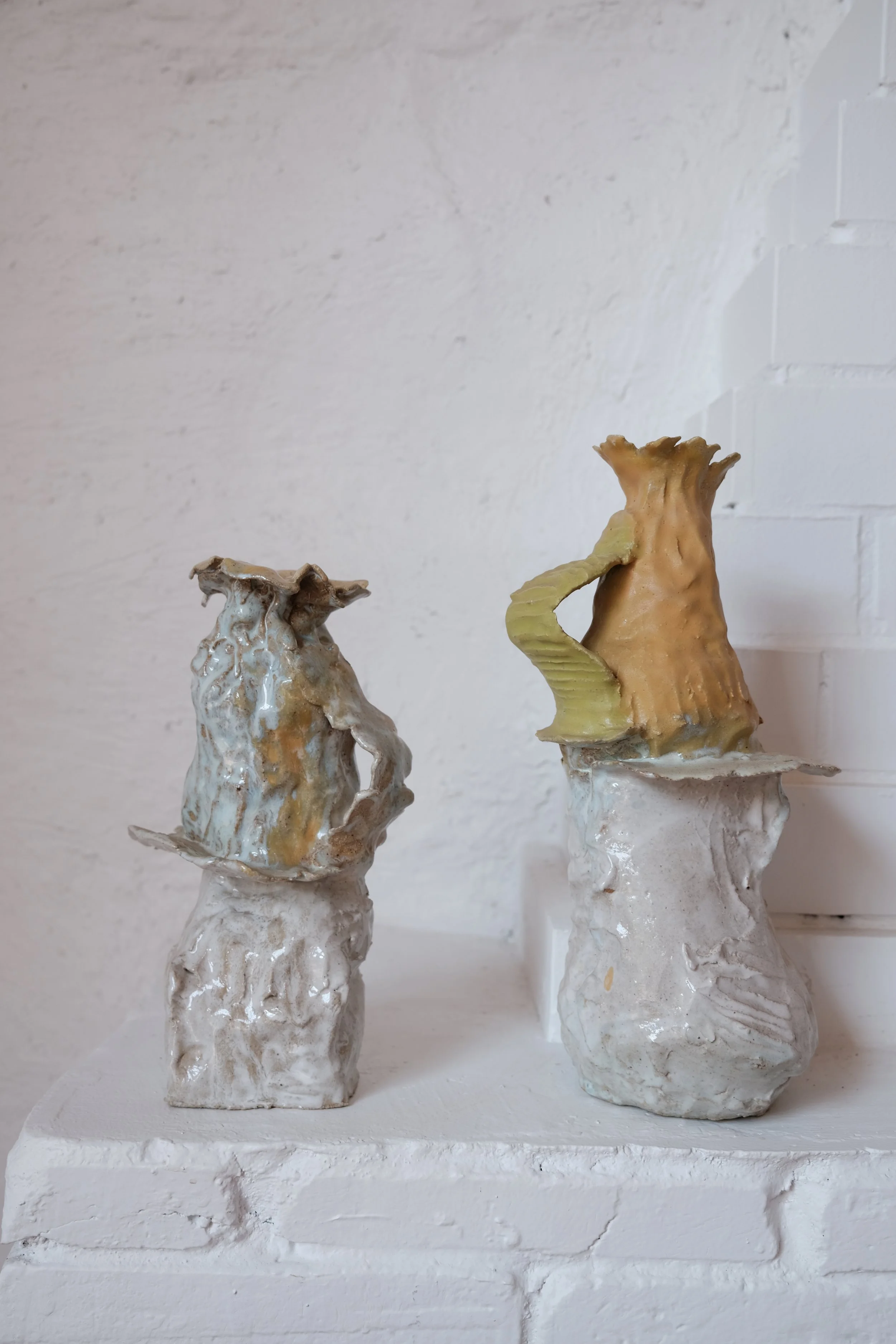 I want to manifest the liminal space between life and death; the clay fired in an echo of the body, leaving us with an incarnation to contemplate after life. My intentions when I have made each piece is that they could possibly house ashes or in stark contrast, flowers and foliage, universal symbols of life.