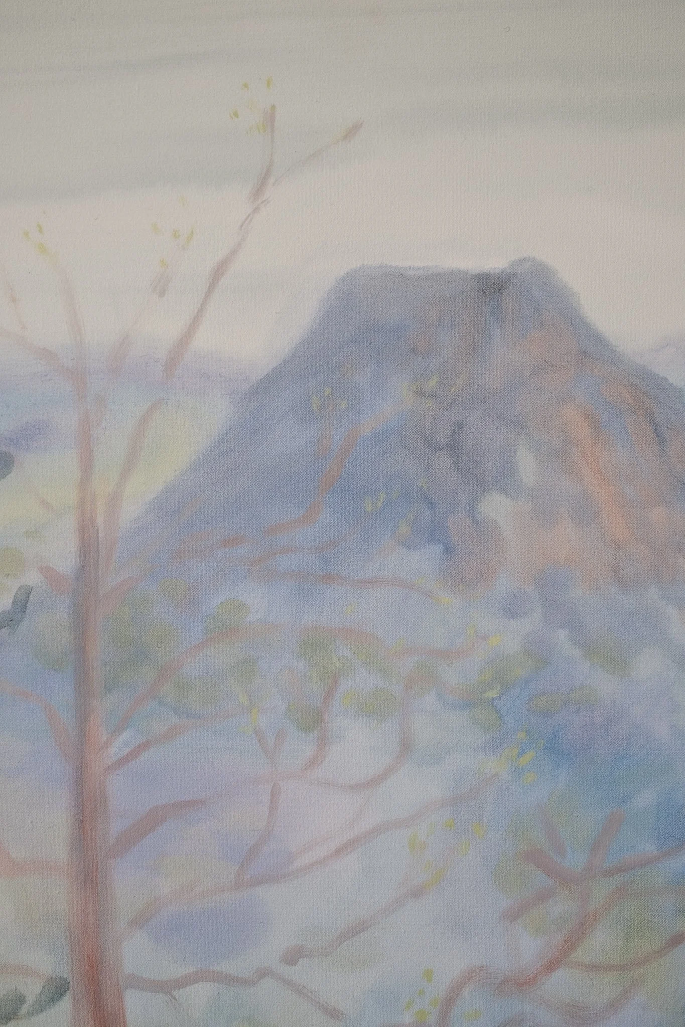 My observational fieldwork is the most enjoyable part of my art practice—time when I feel calm and deeply connected to all that is, in mind, body, and spirit. The watercolours I make, function like descriptive diary entries. They possess a freshness, akin to a poem that arrives upon waking. This time spent in research and observation leads to more complex and formal considerations when I move into larger works in oil. Through the building of translucent layers and the application of washes that bleed and crawl across the surface, I reach for the spaciousness that characterises my diary observations. I aim to present an enchanted landscape that is soft, nuanced, expansive, light and dissolving—all at once.