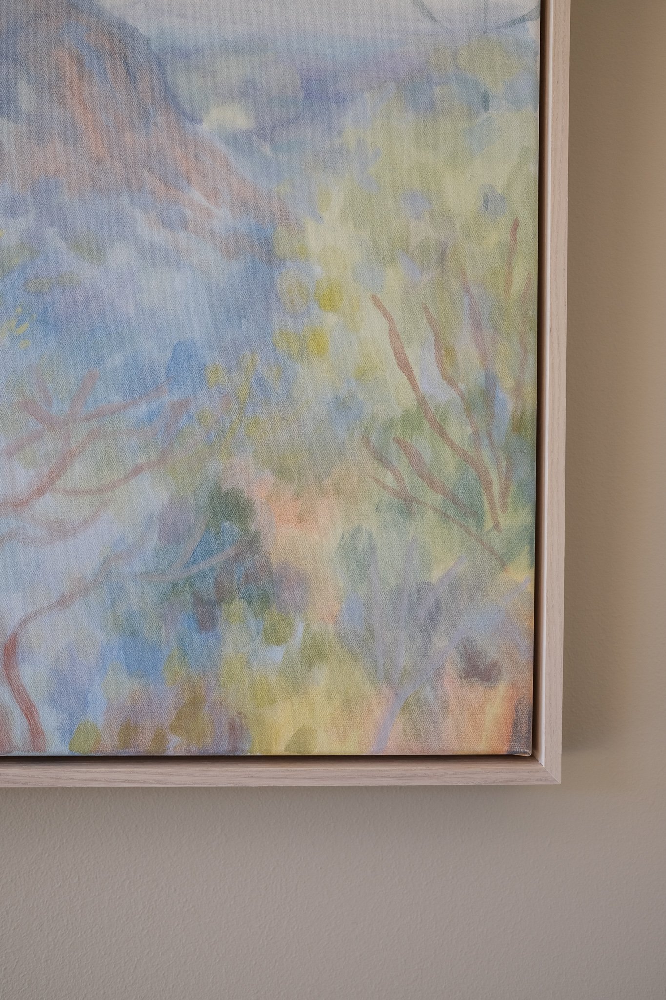 I find it takes time to settle into an unfamiliar landscape. There is a period of exploration and curiosity as my eyes adjust to different forms, both near and far. This leads to a kind of enchantment with the extraordinary that can always be found in wild places. While observing and recording, a deeper enchantment takes hold as I notice and sense everything around me. Small fish swim around my feet, a goanna casually slidies past beneath towering pink paperbarks. The air is filled with the song of the currawong, or the flash of pale-headed rosellas as they flit past. I aim to present an enchanted landscape that is soft, nuanced, expansive, light and dissolving—all at once.