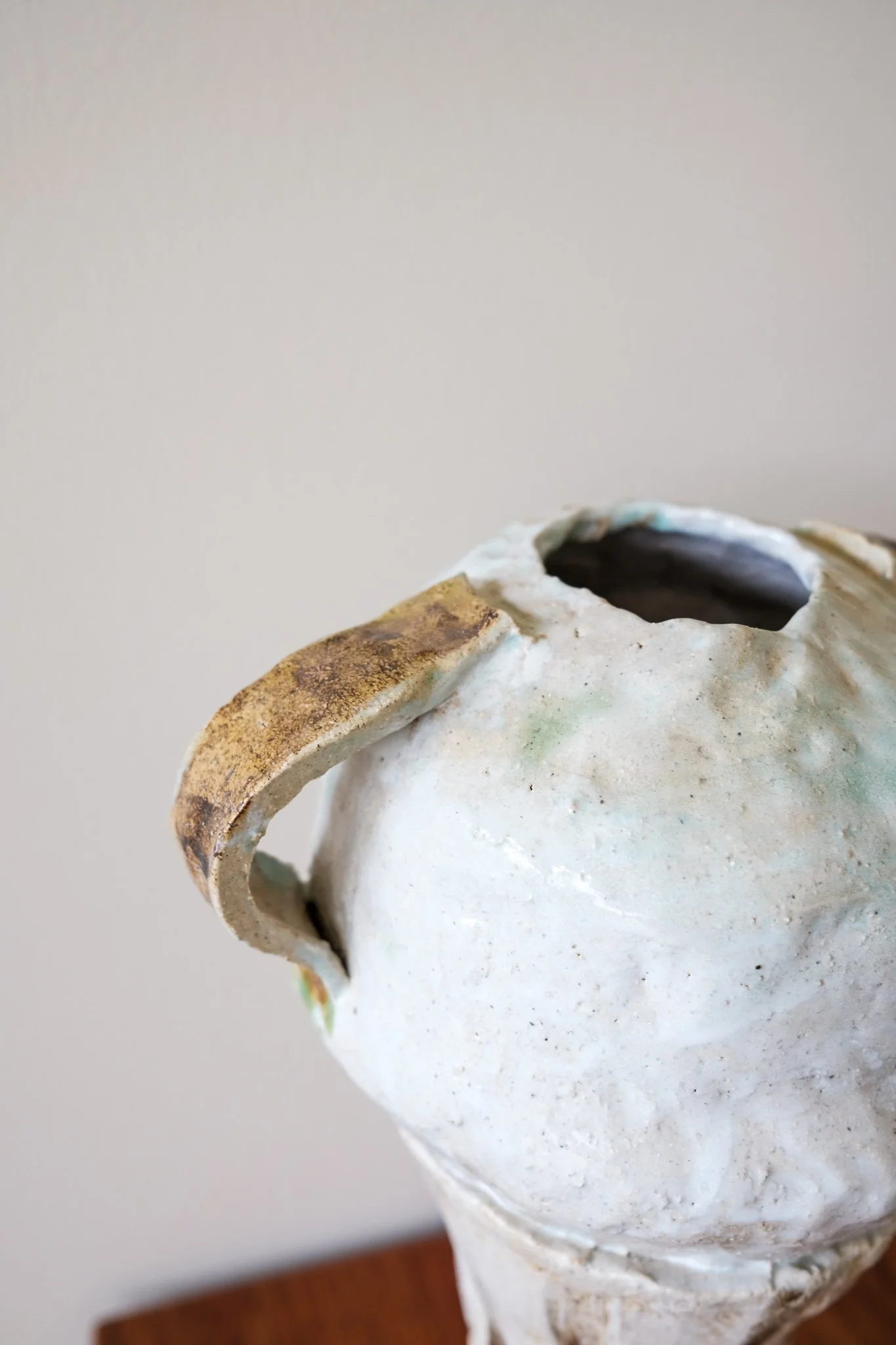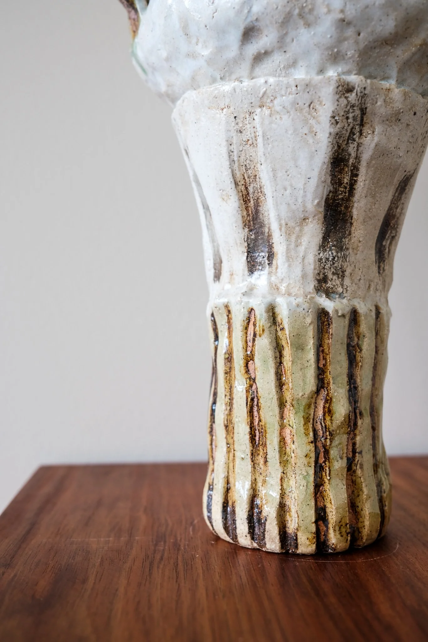 I want to manifest the liminal space between life and death; the clay fired in an echo of the body, leaving us with an incarnation to contemplate after life. My intentions when I have made each piece is that they could possibly house ashes or in stark contrast, flowers and foliage, universal symbols of life.