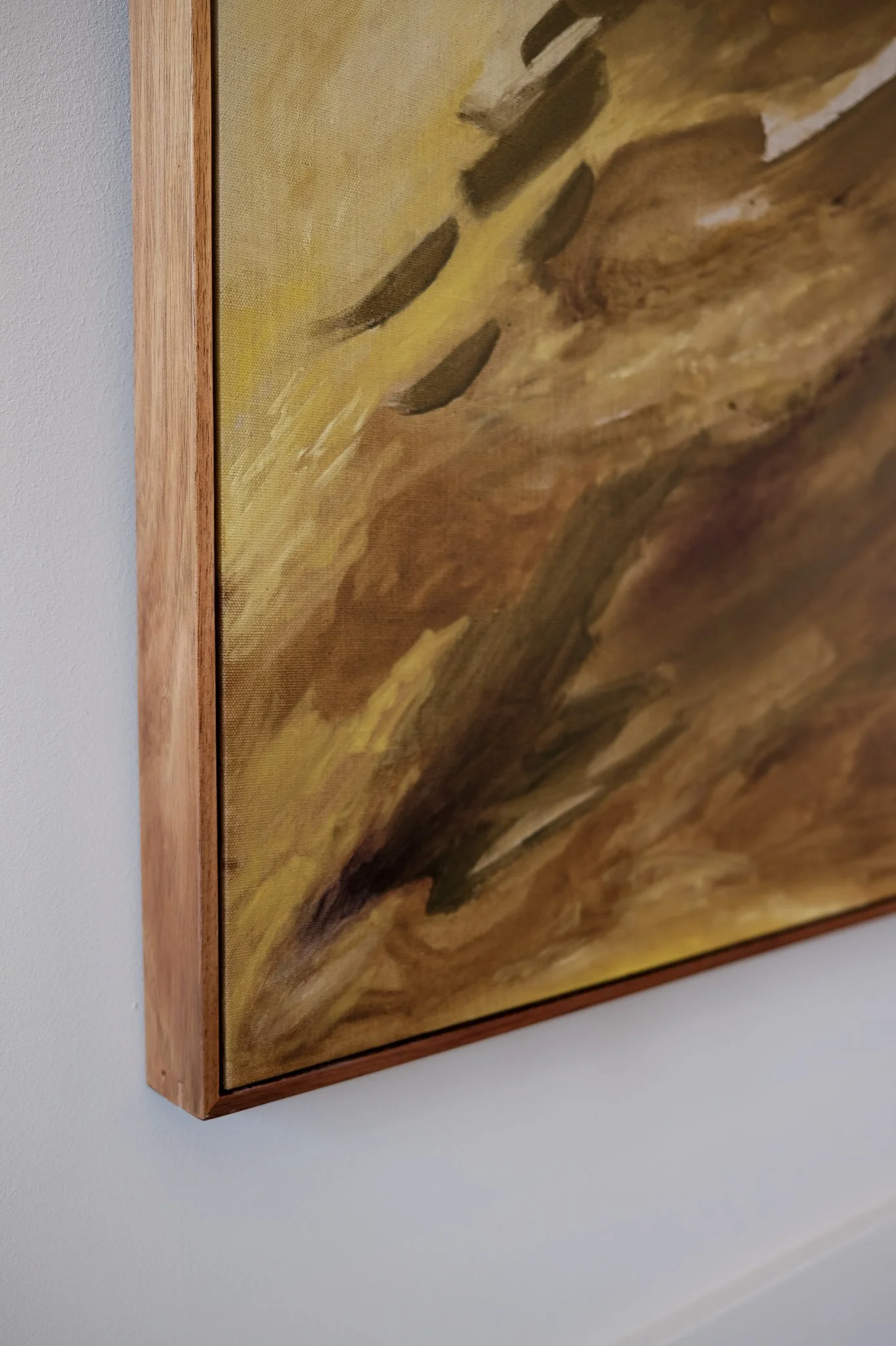 In SOLAR, I trace the shifting presence of light across the land — those golden moments that linger, shimmer, or dissolve. A living, shifting presence within the landscape — not just something we see, but something we feel. These paintings capture the feeling of light rather than its form, allowing colour and gesture to echo long summer days. A pause in brightness; an invitation to feel alive and solar-powered.