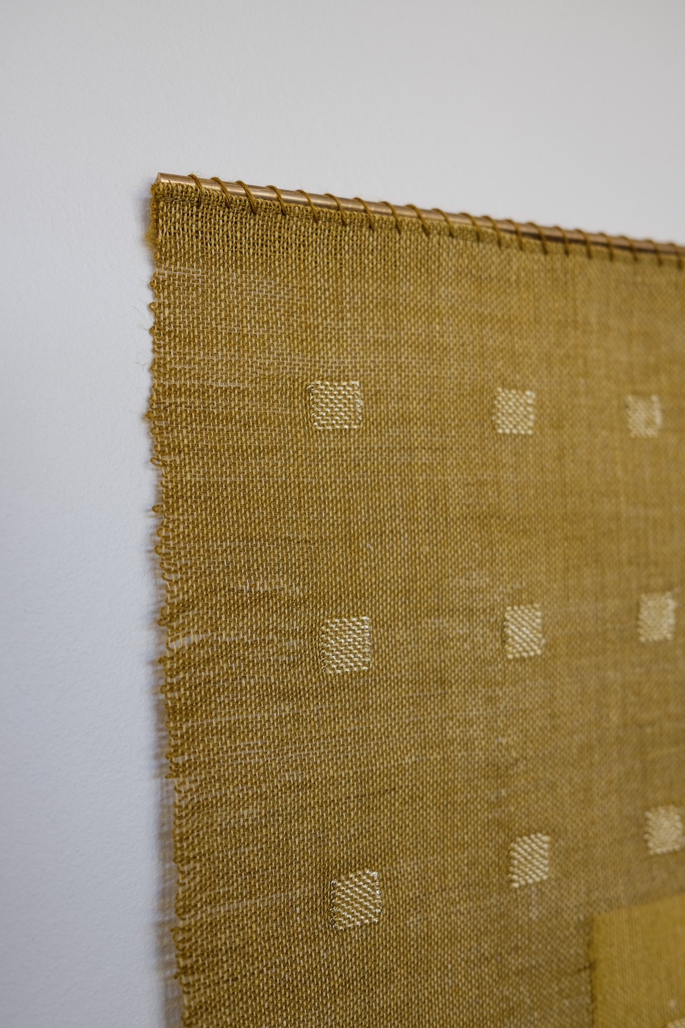 The Bauhaus ethos remains central to Shepherd’s practice, where art, craft and design are seamlessly integrated without hierarchy. Carefully selected yarn affords Shepherd the opportunity to reflect on the deeper lineage of fibre, allowing each material - especially those collected from sites around the studio - to shape the work in a gentle yet deliberate way. She sensitively honours the landscape within which she lives and works by periodically folding in colours resembling the verdant foliage, the dark tones of tree trunks, the neutrals of the sand and stone of her coastal hometown.