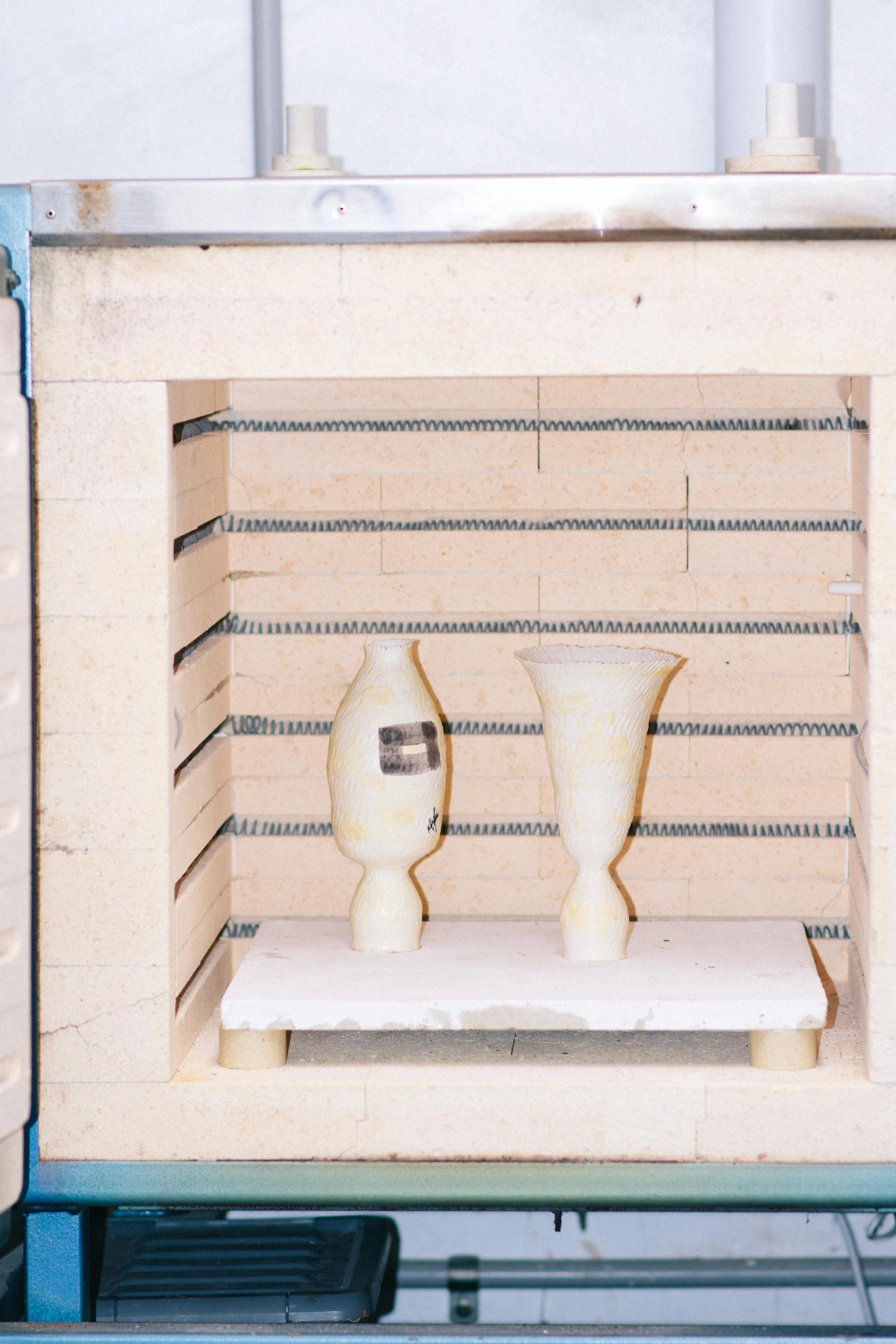 Prior to the mechanisation of craft, traditional coiling technique tended to preserve the coil's presence. The compulsory erasure of the coil emerged in response to the new ideals of speed and uniformity. Today, where mass production dominates, these standards are magnified even more intensely: all surfaces are levelled and flat to the eye, all traces of manual labour are scratched out prior to the final firing. Having learned how to fluently dissolve the process (to smooth the lips with a chamois, to remove my fingerprints with a metal rib, and to say nothing of the labour that came before), I choose instead to make visible the work underneath.
