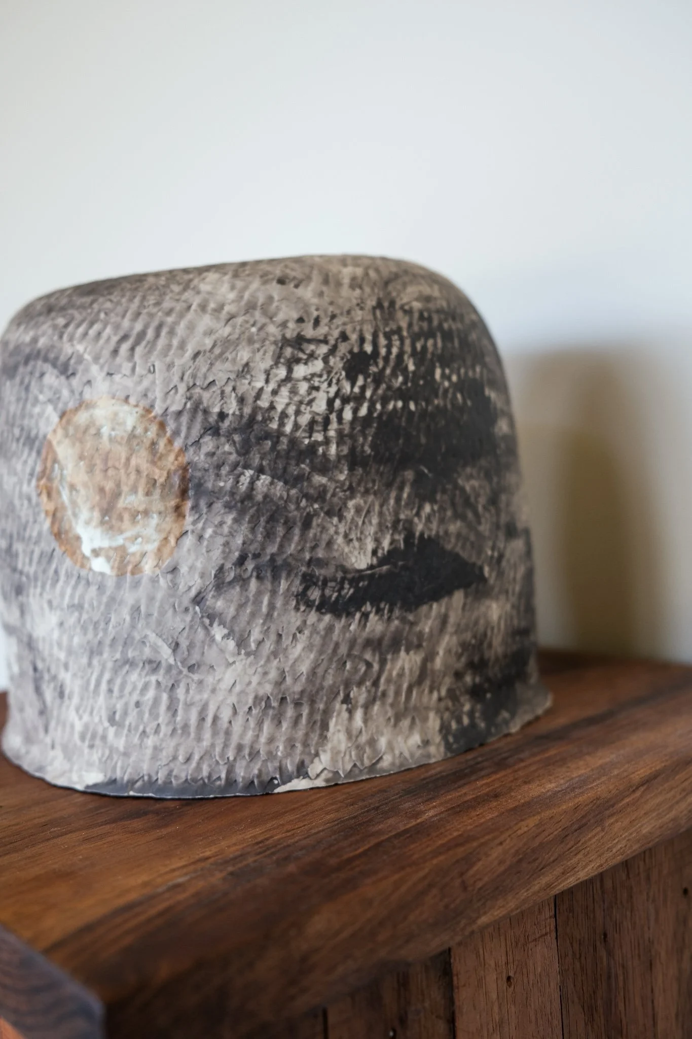 At the intersection of craft and narrative, gốm maker is the material extension of my writing practice. Each sculpture begins with a fragment of text, guiding the slow accumulation of ceramic form and surface. Built gradually over days, the works draw on traditional coiling techniques, rendered contemporary through the use of exceptionally thin, pinched coils, each measuring approximately 0.5 cm at the moment of construction. At this scale, the coils are more acutely responsive to moisture, gravity, and heat, allowing the structure to register all environmental conditions through to the finished form.