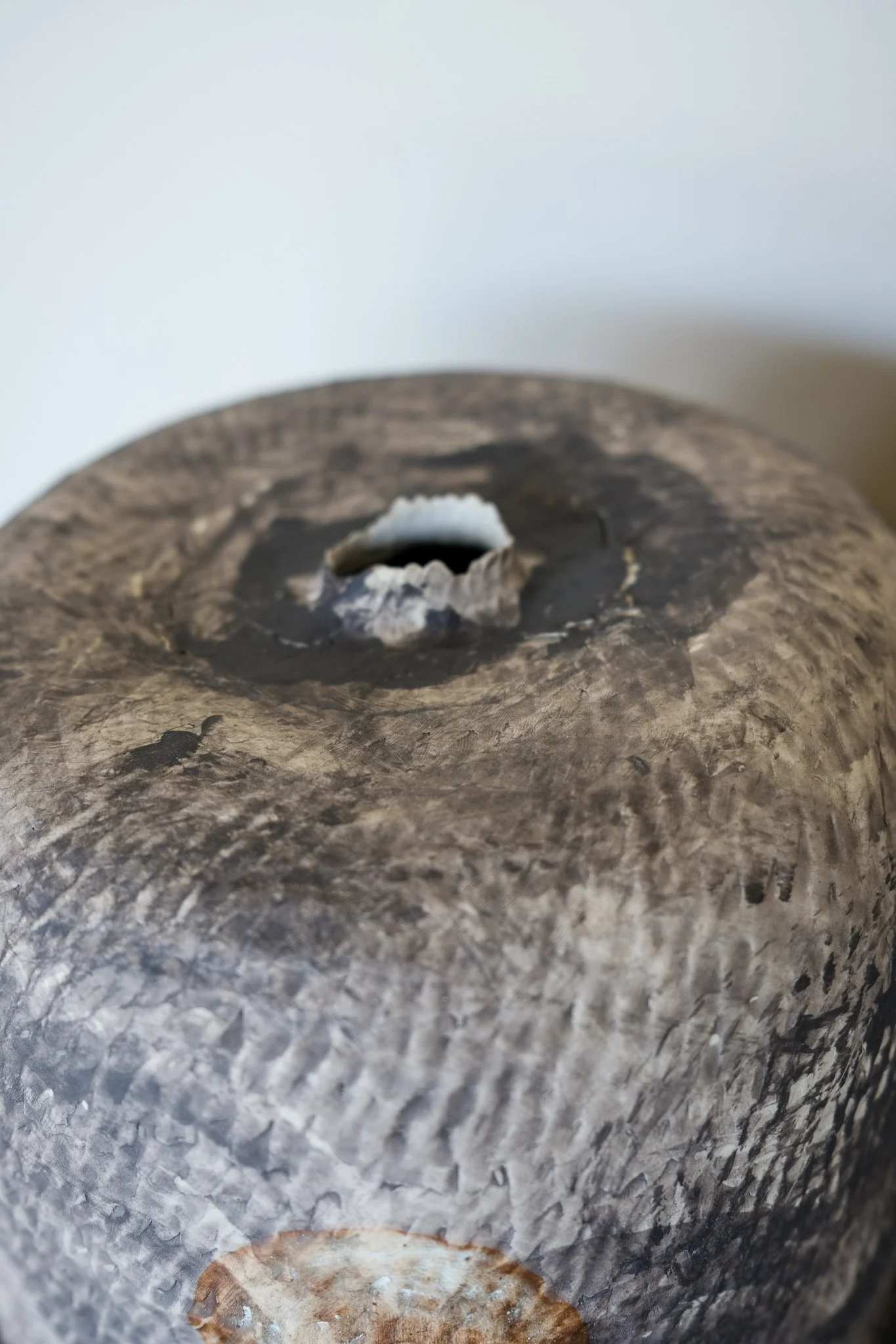 The micro-decisions of the hands in motion, the raw pinched edges, the base bearing the banding wheel markings, every join, compression, and shift in pressure are recorded and remain legible on the clay. It is in these interruptions and irregularities that the work finds its shape.