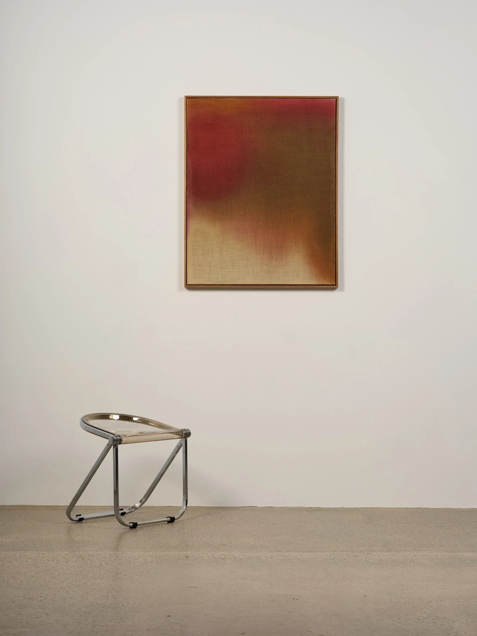 The suspended textile installation in this exhibition extends this thinking into space, creating an environment where material, movement and time are held in suspension.