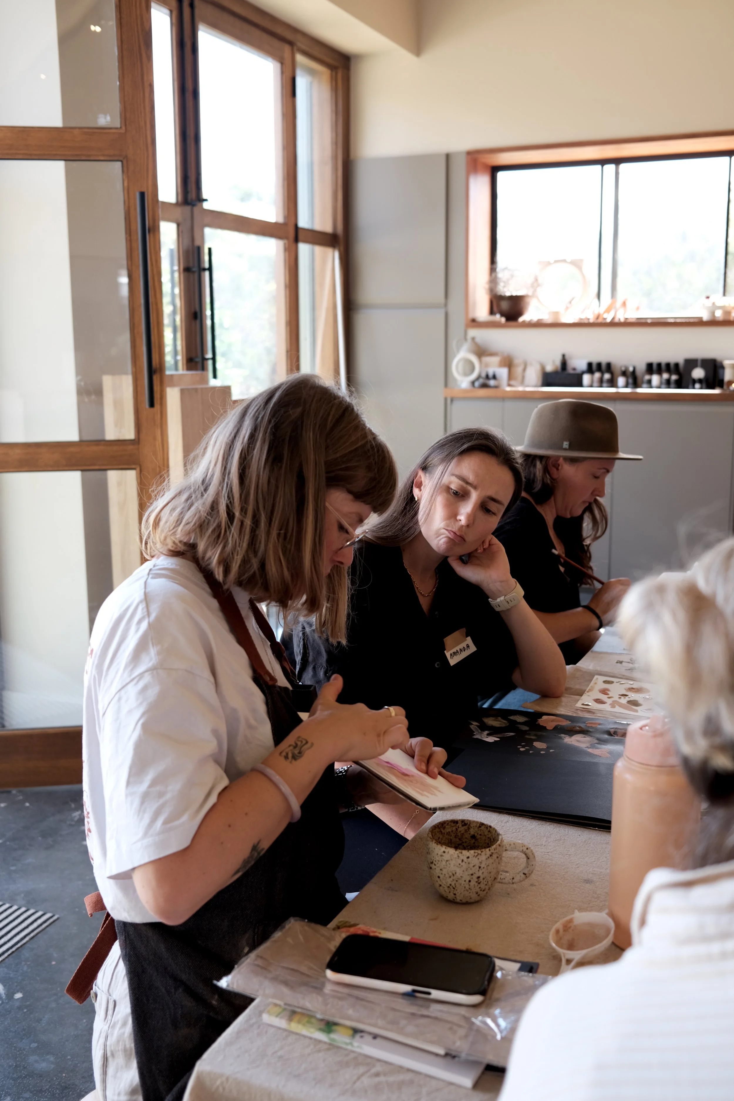 Spend a productive and thoughtful morning grinding, pressing, and mixing your own natural earth paints. You will learn how to find your own earth pigments, including what to look for and important considerations when collecting materials for paint-making. Once you have made your own beautiful natural colours to play with, you will spend time experimenting and painting with your handmade natural palette.